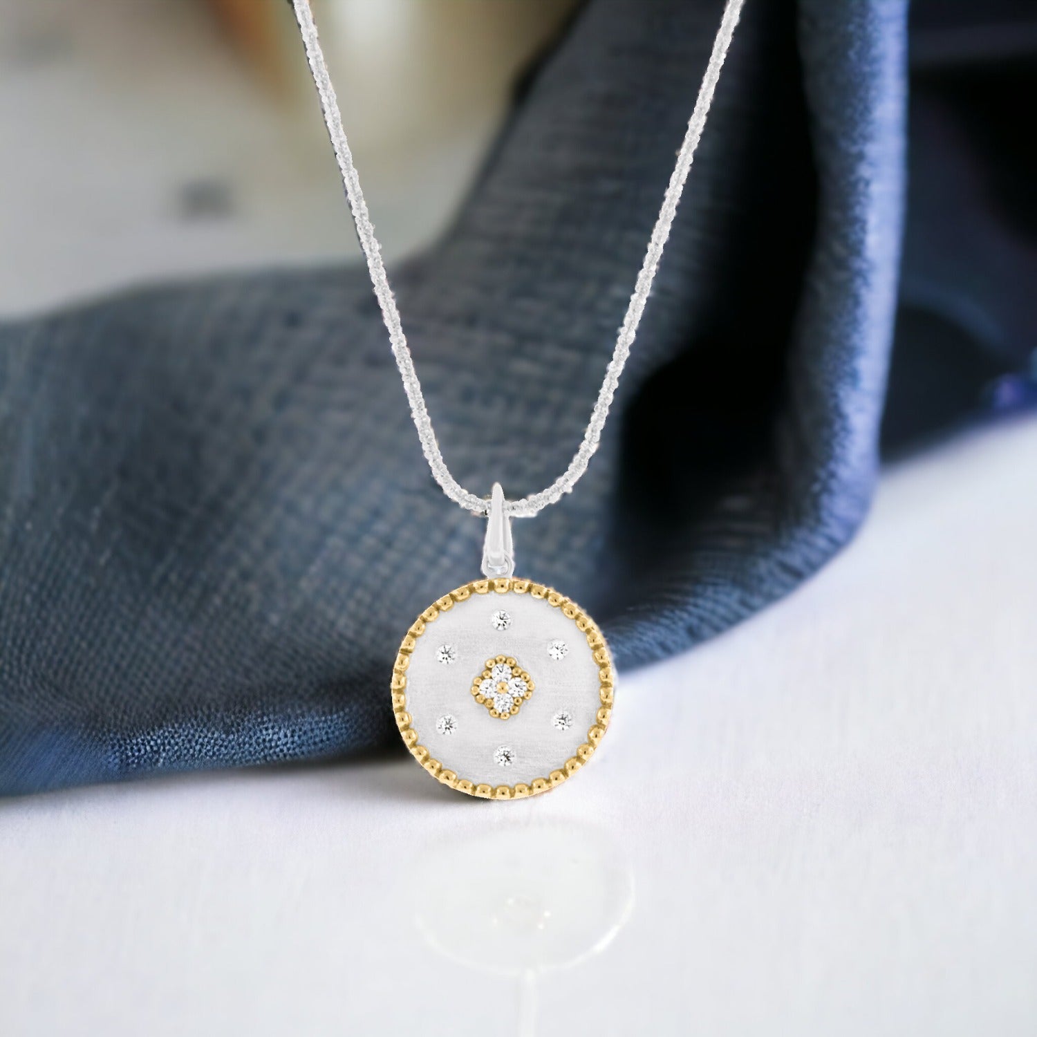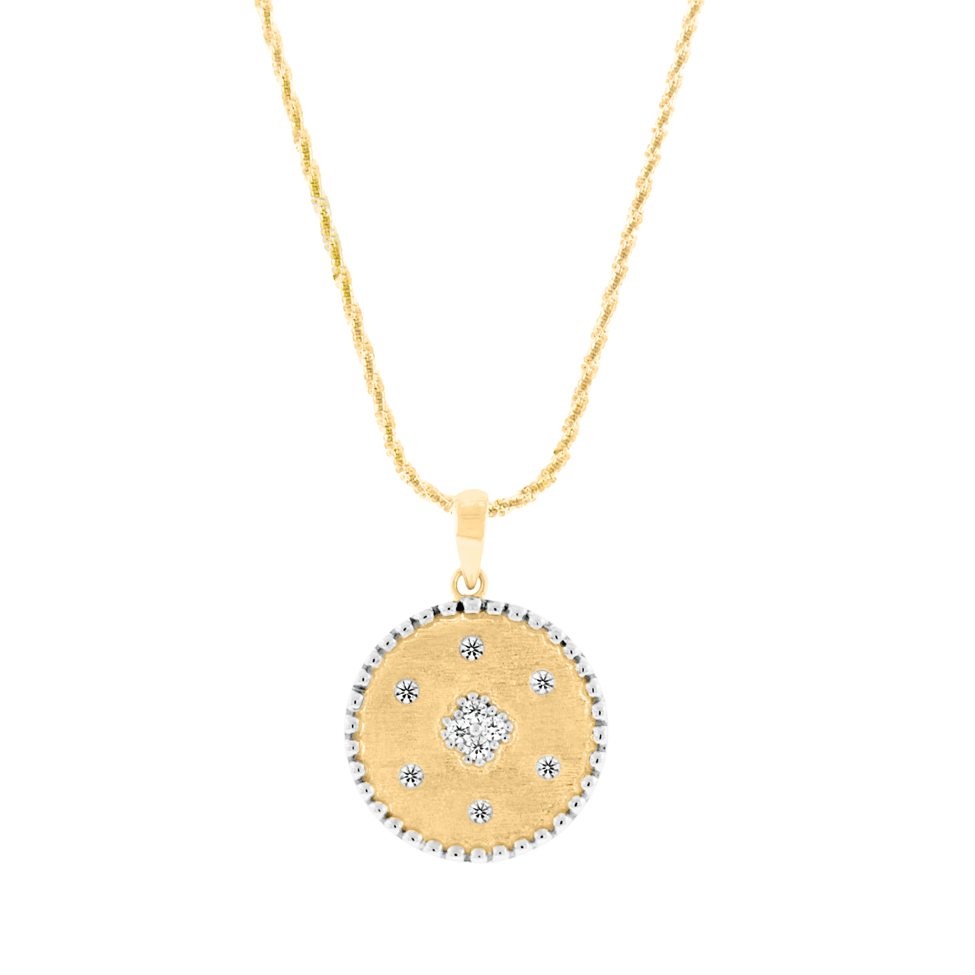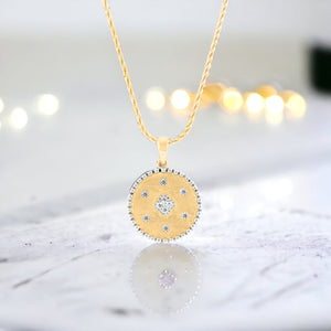 Gold 2-Tone Frosted Rounded Pendant Necklace