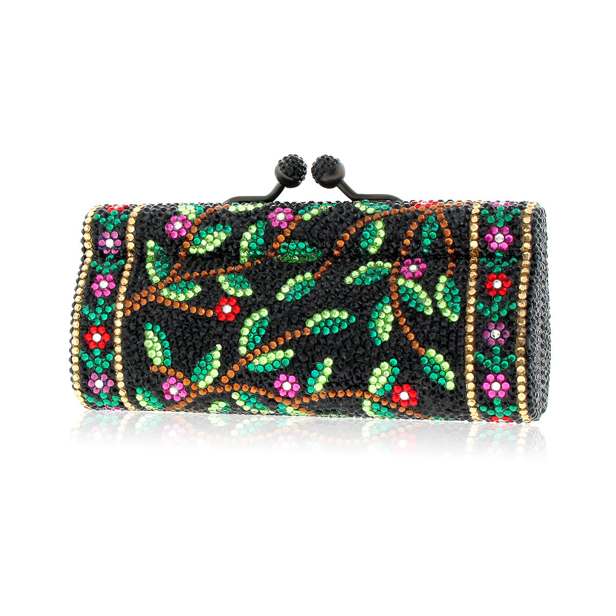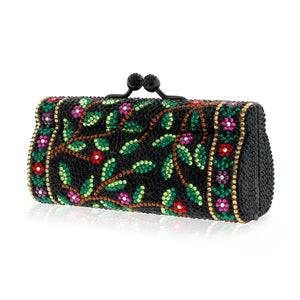 Pink, green, red, and clear crystals adorn this delicate evening clutch. It's one of a kind.