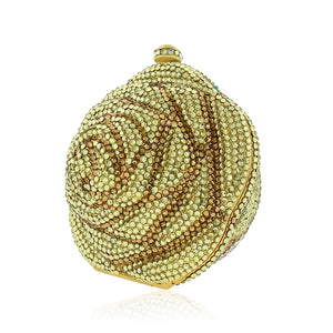 This darling flower shaped crystal evening clutch is a classic accessory for your evening attire. It's one of a kind.